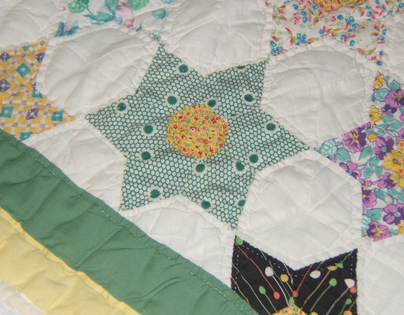 Maria vintage pentagon star twin to queen 004a Published March 21, 2011 at 1303 × 1016 in Vintage Pentagon Star Quilt – super-sized! ← Previous Next → Replacement material This is the same block with the replacement material appliqued on top of the old material. Share this: Click to share on X (Opens in new window) X Click to share on Facebook (Opens in new window) Facebook Click to share on LinkedIn (Opens in new window) LinkedIn Click to share on Pinterest (Opens in new window) Pinterest Click to email a link to a friend (Opens in new window) Email Click to print (Opens in new window) Print Like Loading...