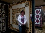 I entered my Sunflower Stars quilt in the Effingham Crossroads Quilt Show a week ago and I brought home a 1st place ribbon and a Best of Show ribbon!  OMG!  It was so cool to get those ribbons!  I loved this quilt show.  I met a gal there that I had found online at mqresource.com – Elizabeth Karnes.  What a VERY nice lady, as well as a wonderful quilter.  Her quilt got a 2nd place ribbon in the sme category.  While I was there, I got an appraisal done on my quilt by AQS certified appraiser Hallye Bone.  It appraised at just under $5000.  OMG! Crazy!  She said she thought I should enter it in Paducah and also thought I should look into getting a pattern published.  I’m actually thinking of doing a “book” instead.  I have 3 original designs – 2 finished and 1 I’m working on.  The 1st quilt (Pretty in Purple) did not have any trapunto. I would like to quilt another one just like the first one (same fabrics, etc.) but using wool batting and trapunto.  Then I could show the same quilt with trapunto and without trapunto.  In addition, there would be the Sunflower Stars quilt along with my new one I’m working on now (tentatively named Springtime Shadows).  Might make a neat concept for a book – how to turn a good quilt into a showstopping quilt with trapunto.  Or something like that.  🙂  What do you think?  Would you buy a book like that?