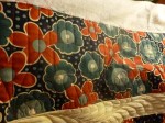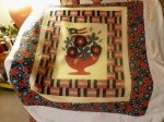 I just pulled this off the frame. What a cool wallhanging/topper. The middle is a panel which I treated as applique. The surrounding borders have feather plumes, stars, and swags. I like how it turned out. I used QD cotton, So Fine and Signature threads.
