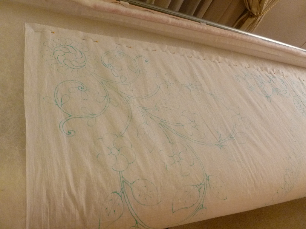 Load the marked quilt top on top of thet batting on your frame. Attach the batting to your leaders as you normally would the backing fabric.