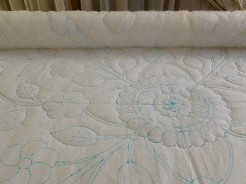 This shows where you stitch. You do not need to stitch out the design…only stitch around the outer edge of the design that will be trapuntoed