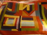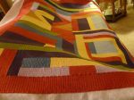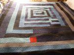 Here are two more Gees Bend quilts finished.  This is the last of the three Gees Bends quilts that Cheryl brought to me.  One is a blue spiral design and the other is a multi-color blocks, rectangles and triangles quilt.  Some of the same designs were used on both and I experimented with a few more on the multi-color triangle one.  I used three threads on the spiral (dark blue, light blue, gray) and one thread on the multi-color one (dark orange).  I actually like how they turned out – the texture is pretty yummy.  As a side note, I was in the LQS on Saturday and looked down at a copy of Angela Water’s Modern Quilting book and said “that’s my quilt!”  It wasn’t of course, but it sure looked like it at first glance (color and quilting designs).  Anyway, here are just a few pics (I ran out of good light on the multi-color one.  The backing fabric on that is a red batik and all the fabrics were batik.)  I used QD black poly on the spiral and 80/20 blend on the “triangle” one.