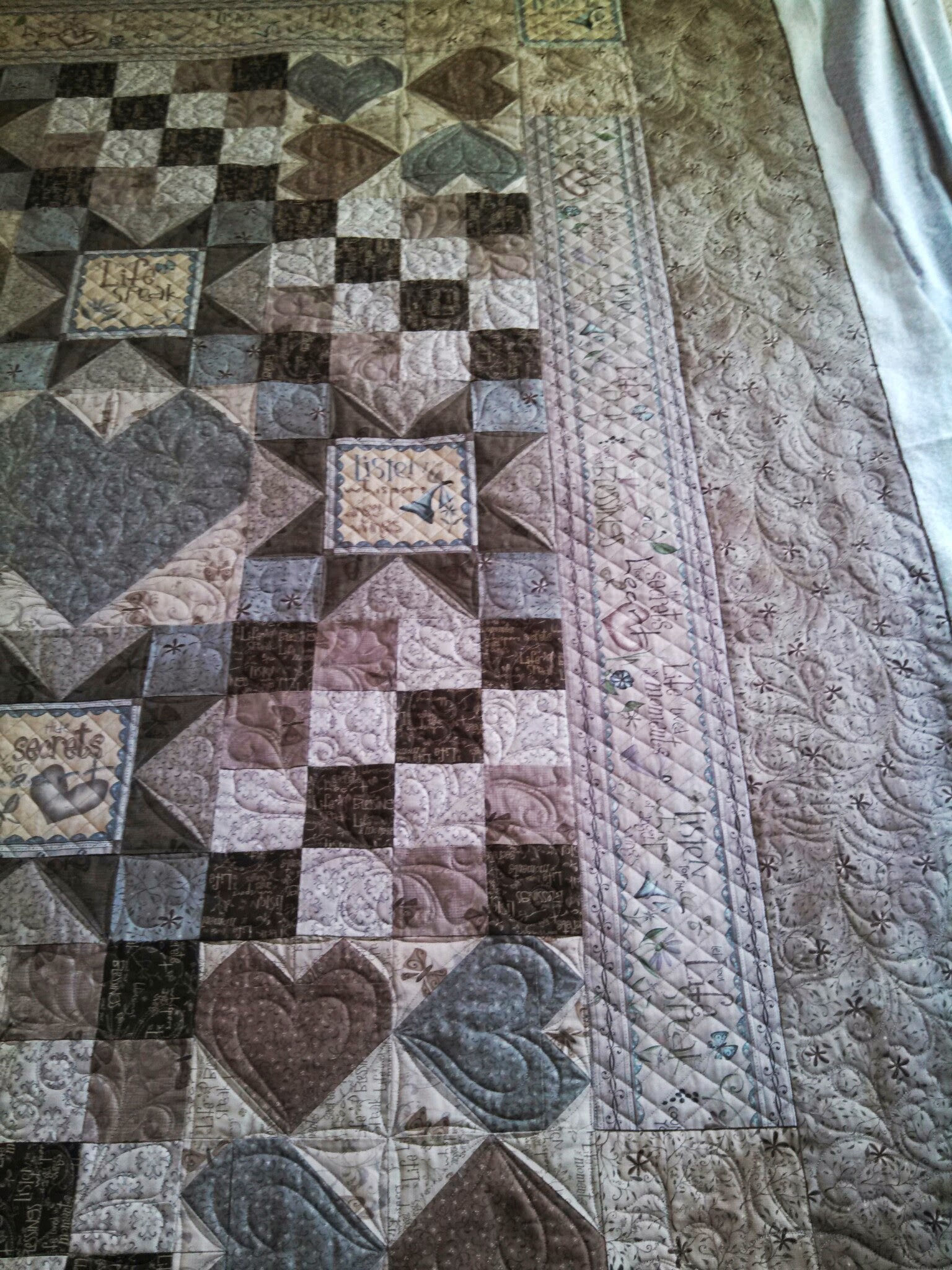 Mary’s Heart of Life quilt December 3, 2013 · by Joy Voltenburg · in Customer Quilts, Quilting Designs on the Longarm. · Mary M brings me some really lovely tops. I loved how t his turned out. I did checkerboards and feathers and hearts on this. I can’t remember the color of thread, but I think I used a gray So Fine. 80/20 Blend batting. Rate this:Share this: Click to share on X (Opens in new window) X Click to share on Facebook (Opens in new window) Facebook Click to share on LinkedIn (Opens in new window) LinkedIn Click to share on Pinterest (Opens in new window) Pinterest Click to email a link to a friend (Opens in new window) Email Click to print (Opens in new window) Print Like Loading... Related