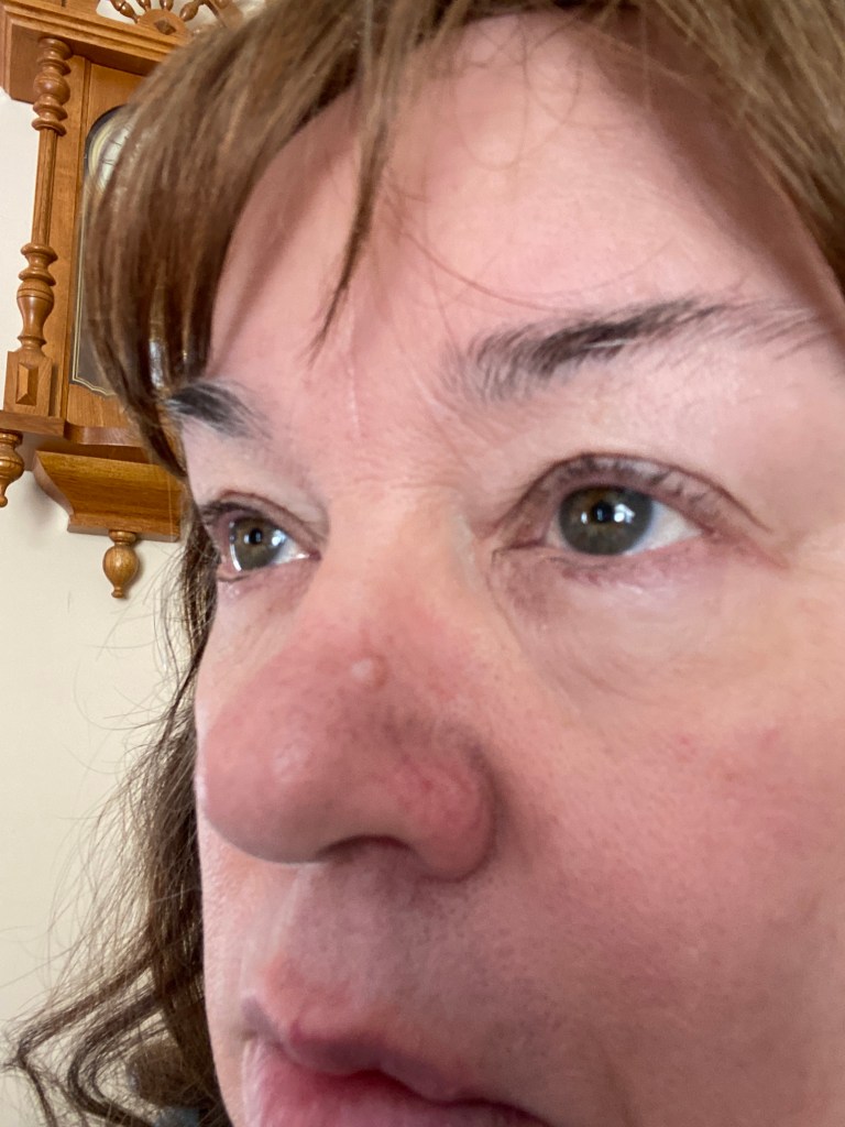 Now, notice my nose in the above pic. At the time this was taken in July, 2019, there was no spot on the side of my nose. Fast forward to September, 2019 and this spot had sprung up on my nose.