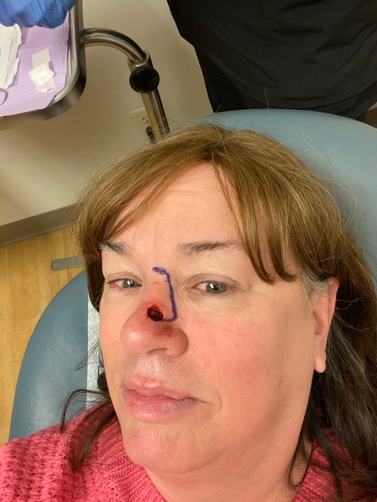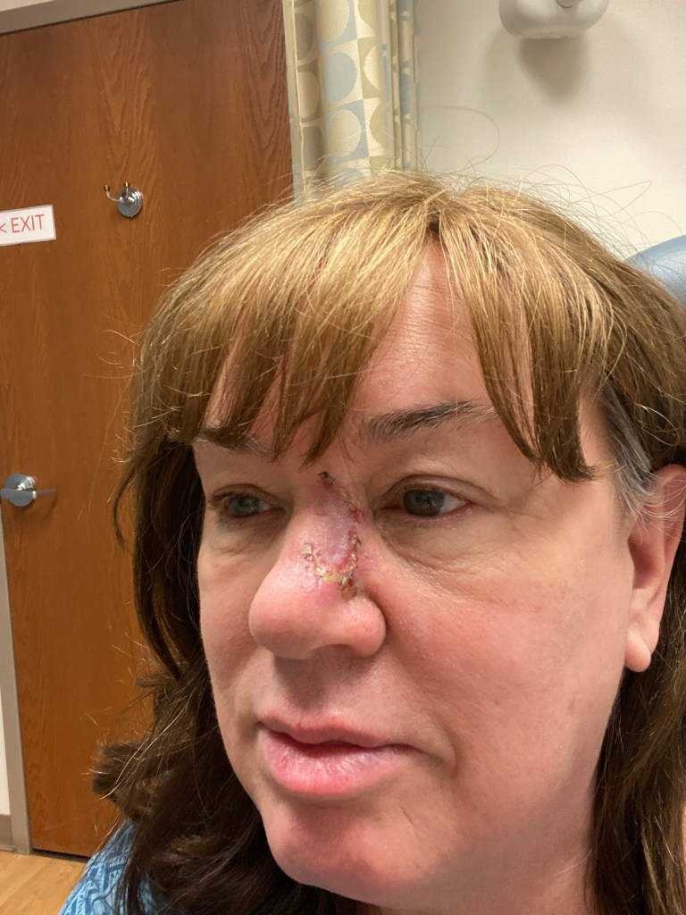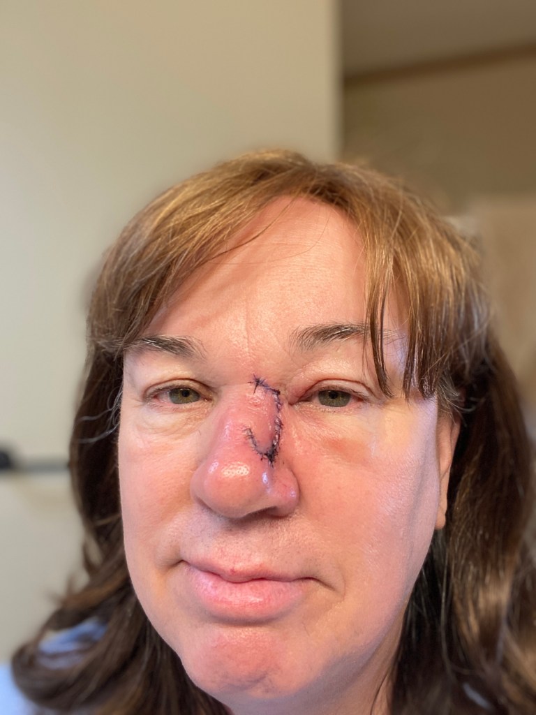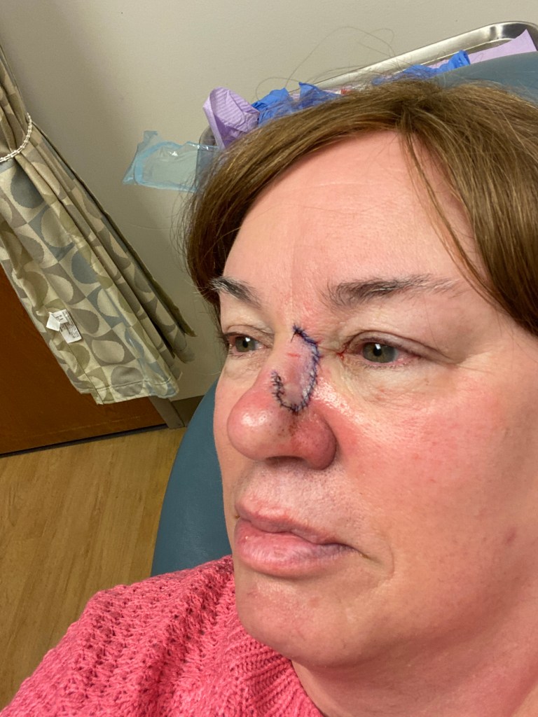 The 1st option wasn’t an option for me. The skin graft would likely result in a mismatch of pigmentation and texture. The rotational flap required him to cut my skin along my nose and was the more complicated option. I chose to do a rotational flap. I felt it would result in the least noticeable scar (evenually).