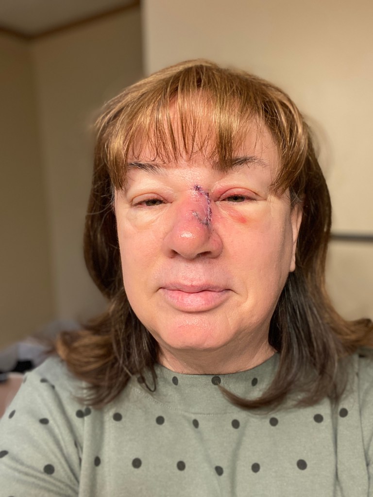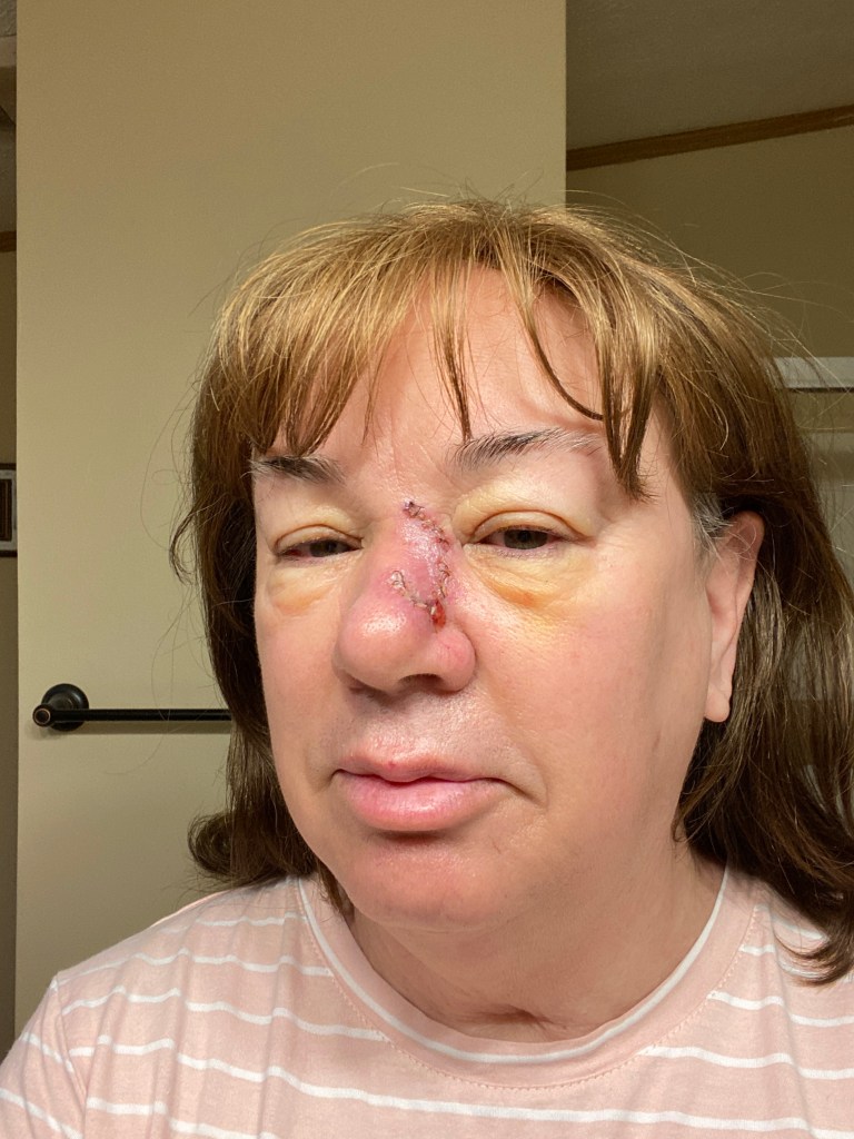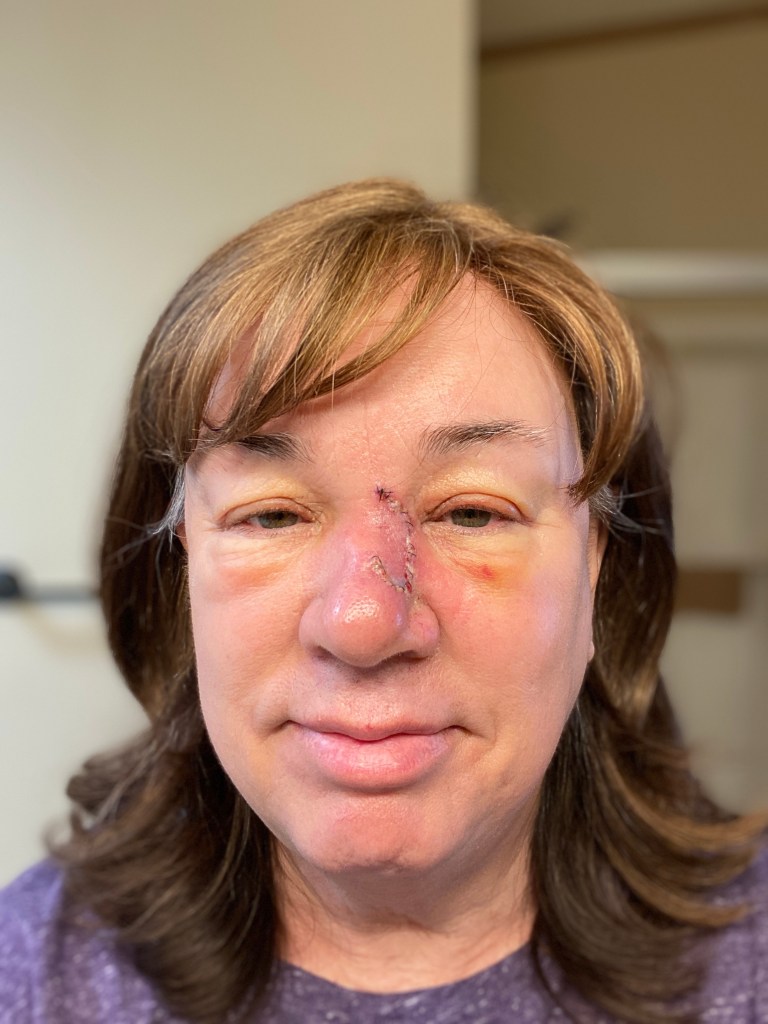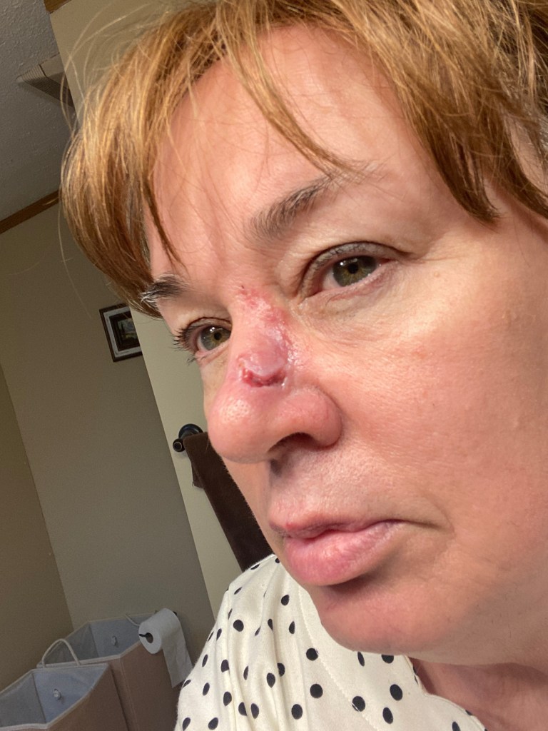 The 1st option wasn’t an option for me. The skin graft would likely result in a mismatch of pigmentation and texture. The rotational flap required him to cut my skin along my nose and was the more complicated option. I chose to do a rotational flap. I felt it would result in the least noticeable scar (evenually).